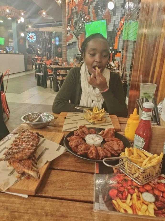 Hapa we went for drinks and called Nyambura to pay.
